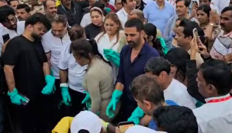 Mumbai: Bollywood superstar Akshay Kumar took up the beach clean-up drive in Mumbai on Sunday. The video from the clean-up shows the actor at the Juhu beach in Mumbai engaging in the drive.The clean-up was organised a day after Ganpati Visarjan. Joining him in the initiative were Amruta Fadnavis, wife of Maharashtra CM Devendra Fadnavis, and BMC Commissioner Bhushan Gagrani. The videos have also been widely shared on social media, and they show Akshay Kumar picking up waste left behind after the immersion and placing it in bags alongside other volunteers.Speaking at the event, the superstar also opened up about the importance of public responsibility in maintaining cleanliness. He said that it’s common wisdom to maintain cleanliness. He also attributed the cleanliness to Prime Minister Narendra Modi, who says that cleanliness is not just the government’s duty, nor only BMC’s responsibility, it is the responsibility of the public as well.Earlier, Akshay Kumar reunited with Saif Ali Khan for the upcoming film ‘Haiwaan’ as the film went on floors. Akshay took to his Instagram, and shared a BTS video in which he and Saif can be seen casually talking with director Priyadarshan. The film marks Saif and Akshay’s reunion after 18 years, the two last worked together in ‘Tashan’, which was a commercial and critical disaster.He wrote in the caption, “Hum sab hi hain thode se shaitaan… Koi upar se Saint, koi andar se Haiwaan :)) Starting the shoot for #Haiwaan today with my absolute favourite captain of the ship, @priyadarshan.official Sir. Great to be working with Saif after nearly 17 years. Let’s get the haiwaniyat rolling!! @kvn.productions @thespianfilms_ind”.Saif, who sustained knife injuries at his Bandra house in January this year, is back to working on film sets. The actor was stabbed multiple times in an attempt to fight off a burglar during the wee hours of Thursday. The actor sustained six stab wounds, two of which are said to be serious as they are closer to his spine.