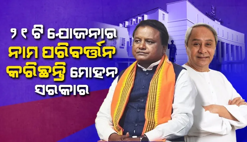 ଭୁବନେଶ୍ବର: ଇତିମଧ୍ୟରେ ପୁରୁଣା ନବୀନ ସରକାରଙ୍କର ମୋଟ ୨୧ଟି ଯୋଜନାର ନାମକୁ ନୂଆ ସରକାର ପରିବର୍ତ୍ତନ କରିଛନ୍ତି। ଏସଂକ୍ରାନ୍ତରେ ଗୁରୁବାର ବିଧାନସଭାରେ ମୁଖ୍ୟମନ୍ତ୍ରୀ ମୋହନ ଚରଣ ମାଝୀଙ୍କ ପକ୍ଷରୁ ଲିଖିତ ଉତ୍ତର ରଖାଯାଇଛି।ବିଜେଡି ବିଧାୟକ ତୁଷାରକାନ୍ତି ବେହେରା ଏନେଇ ବିଧାନସଭାରେ ଏକ ପ୍ରଶ୍ନ ପଚାରିଥିଲେ । ସେ ପ୍ରଶ୍ନ କରିଥିଲେ ଯେ, ୨୦୨୪ ମାର୍ଚ୍ଚ ୩୧ ସୁଦ୍ଧା ରାଜ୍ୟରେ ରାଜ୍ୟ ଯୋଜନା, କେନ୍ଦ୍ର ଯୋଜନା କେତେ ପ୍ରତିଶତ ଅନୁଦାନରେ ଏବଂ କେଉଁ କେଉଁ ଯୋଜନା କାର୍ୟ୍ୟକାରୀ ହେଉଥିଲା ? ଏଥିସହ କେଉଁ ସବୁ ପୁରୁଣା ଯୋଜନାର ନାମ ପରିବର୍ତ୍ତନ କରି ସରକାର ଏହାର ନୂତନ ନାମକରଣ କରିଛନ୍ତି। ତୁଷାରକାନ୍ତି ବେହେରାଙ୍କ ପ୍ରଶ୍ନର ଲିଖିତ ଉତ୍ତର ମୁଖ୍ୟମନ୍ତ୍ରୀ ମୋହନ ଚରଣ ମାଝୀ ରଖିଥିଲେ।ଏହି ଉତ୍ତରରୁ ମିଳିଥିବା ତଥ୍ୟ ଅନୁସାରେ ଏପର୍ଯ୍ୟନ୍ତ ମୋଟ ୨୧ଟି ଯୋଜନାର ନାମ ପରିବର୍ତ୍ତନ ମୋହନ ସରକାରଙ୍କ ଦ୍ବାରା କରାଯାଇଛି ।