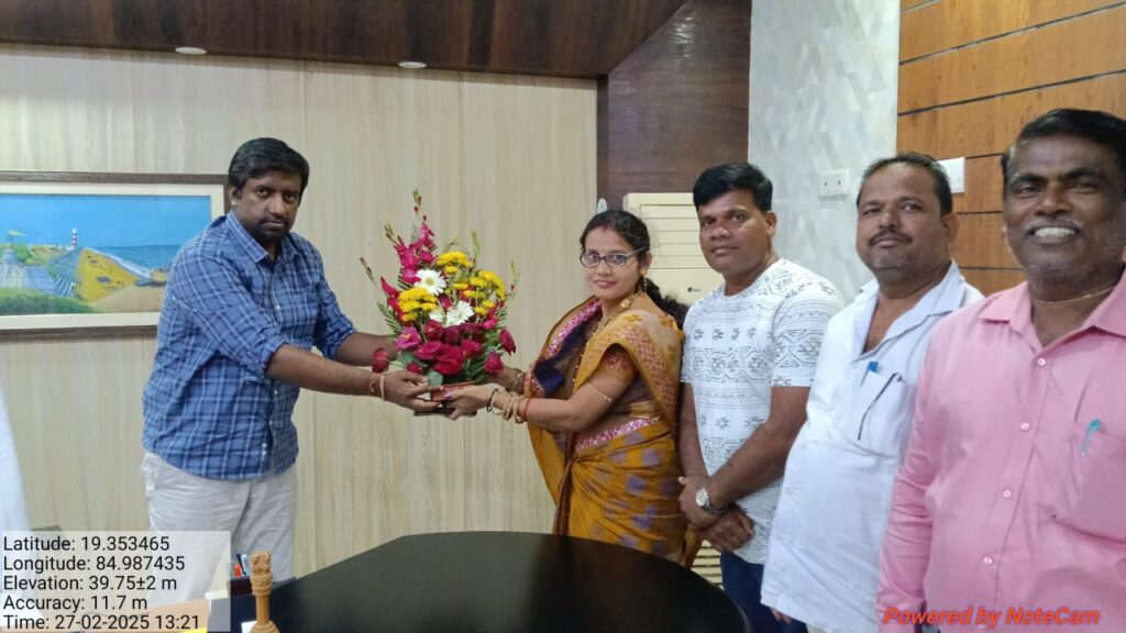 ଛତ୍ରପୁର/ ବେଲଗୁଣ୍ଠା (ଅମରେନ୍ଦ୍ର କୁମାର ପଟ୍ଟନାୟକ, ଓଡ଼ିଶା ଟୁଡେ): ପଞ୍ଚାୟତ ସମିତିର ଉପନିର୍ବାଚନରେ ଅଧ୍ଯକ୍ଷା ଭାବେ ନିର୍ବାଚିତ ହେବା ପରେ ବଡବୋର ସିଂ ପଞ୍ଚାୟତର ସମିତି ସଭ୍ୟା ମମତା ଭୋଳ ଦିନ ୧ ଟା ୩୦ ମିନିଟ ସମୟରେ ଛତ୍ରପୁର ରେ ଜିଲ୍ଲାପାଳ ଦିବ୍ୟଜ୍ୟୋତି ପରିଡ଼ାଙ୍କ ସରକାରୀ କାର୍ଯ୍ୟାଳୟ ଠାରେ ସାକ୍ଷାତ କରିଥିଲେ ।