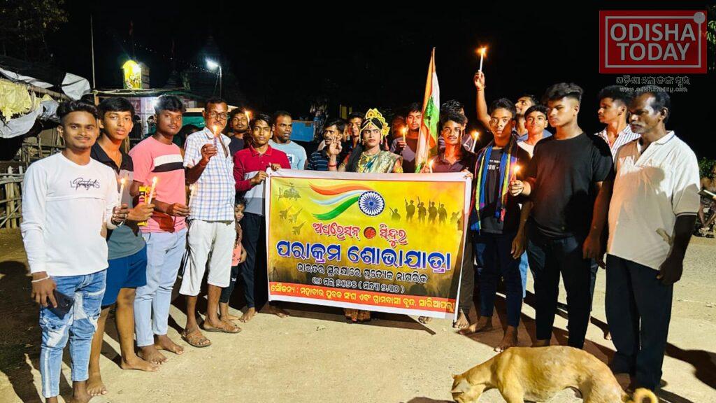 ବେଲଗୁଣ୍ଠା ( ଅମରେନ୍ଦ୍ର କୁମାର ପଟ୍ଟନାୟକ,ଓଡ଼ିଶା ଟୁଡେ): ଗଞ୍ଜାମ ଜିଲ୍ଲା ବେଲଗୁଣ୍ଠା ବ୍ଲକ ଅନ୍ତର୍ଗତ ଇଂଙ୍ଗିନାଠୀ ଗ୍ରାମ ପଞ୍ଚାୟତର ସାରିଆପଲ୍ଲୀ ଗ୍ରାମରେ ଗତ ସୋମବାର ଦିନ ରାତ୍ର ୮ ଘଣ୍ଟ ସମୟରେ ଅପରେସନ ସିନ୍ଦୁର ପରାକ୍ରମ ବିଜୟ ଶୋଭାଯାତ୍ରା ଅନୁଷ୍ଠିତ ହୋଇଯାଇଛି । କାର୍ଯ୍ୟକ୍ରମ ପ୍ରାରମ୍ଭରେ ଗ୍ରାମର ପ୍ରାରମ୍ଭରେ ଥିବା ହନୁମାନ ମନ୍ଦିରରେ ଭାରତ ଓ ପାକିସ୍ତାନ ମଧ୍ୟରେ ଲାଗିରହିଥିବା ଯୁଦ୍ଧରେ ଭାରତର ବିଜୟ ଏବଂ ସହିଦ ହୋଇଥିବା ଭାରତୀୟ ସେନାର ଅମର ଆତ୍ମା ର ଶାନ୍ତି ନିମନ୍ତେ ମହାବୀର ଯୁବକ ସଂଘ ତରଫରୁ ଦୀପ ପ୍ରଜ୍ୱଳନ କରାଯାଇଥିଲା । ତାପରେ ହନୁମାନ ମନ୍ଦିର ରୁ ଯୁବକ ସଙ୍ଘର ସଦସ୍ୟମାନେ କ୍ୟାଣ୍ଡେଲ ଧରି ଶୋଭାଯାତ୍ରା ବାହାରି, “ଭାରତ ମାତା କି ଜୟ”, “ସହିଦ ଯବାନ ଅମର ରହେ”, “ଜୟ ଯବାନ” ନାରା ଦେଇ ପୁରା ଗ୍ରାମ ପରିକ୍ରମା କରିଥିଲେ। ଶେଷରେ ଗ୍ରାମର ମଧ୍ୟ ବିନ୍ଦୁରେ ଥିବା ମା ବୃନ୍ଦାବତୀ ପୀଠରେ ଦୀପ ପ୍ରଜ୍ୱଳନ କରିବା ସହିତ ସହିଦ ଯବାନଙ୍କର ଅମର ଆତ୍ମା ର ଶାନ୍ତି ନିମନ୍ତେ ୨ ମିନଟର ନିରବ ପ୍ରାର୍ଥନା କରାଯିବା ସହିତ ଜାତୀୟ ସଂଗୀତ ଗାନ କରାଯାଇଥିଲା ।ଏହି କାର୍ଯ୍ୟକ୍ରମକୁ ସୁପରିଚାଳନା କରିବାରେ ମୁଖ୍ୟତଃ ଅଭିମନ୍ୟୁ ରାଉତ, ଭାବଗ୍ରାହୀ ପ୍ରଧାନ, ସଞ୍ଜୟ ରାଉତ, ସୁରେନ୍ଦ୍ର ଜେନା, ସୁଶାନ୍ତ ମହାନ୍ତି, ରାଜେନ୍ଦ୍ର ରାଉତ, ଗୌରୀ ଶଙ୍କର ପ୍ରଧାନ, ବଳରାମ ମହାନ୍ତି, ସୁରଜ ପାତ୍ର ପ୍ରମୁଖ ଭୂମିକା ଗ୍ରହଣ କରିଥିଲେ ।