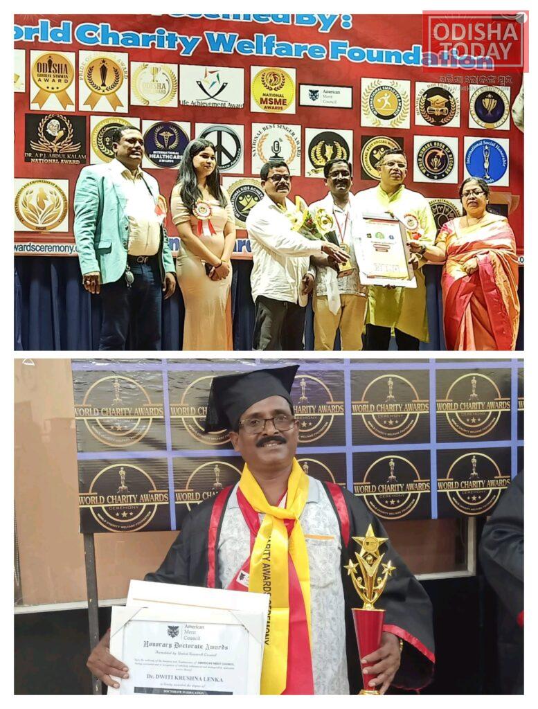 ଭଞ୍ଜନଗର( ଅମରେନ୍ଦ୍ର କୁମାର ପଟ୍ଟନାୟକ, ଓଡ଼ିଶା ଟୁଡେ): ଗଞ୍ଜାମ ଜିଲ୍ଲା ଭଞ୍ଜନଗର ସବଡିଭିଜନ ଅନ୍ତର୍ଗତ ବେଲଗୁଣ୍ଠା ବ୍ଳକ ଅଧିନସ୍ଥ ନେଟଙ୍ଗା ଗ୍ରାମର ପ୍ରକୃତି ବନ୍ଧୁ ସମ୍ମାନୀତ ବିଜ୍ଞାନ ଶିକ୍ଷକ ଶ୍ରୀ ଦ୍ଵିତୀକୃଷ୍ଣ ଲେଙ୍କା ଓ୍ଵାରଲଡ୍ ଚାରିଟି ୱଲଫେର୍ ଫାଉଣ୍ଡେସନ୍ ଦ୍ଵାରା ଇଣ୍ଟରନେସନାଲ୍ ସୋସିଆଲ ଅନରେବଲ୍ ଆଓ୍ଵାର୍ଡ ସହିତ ଆମେରିକାନ୍ ମେରିଟ୍ କାଉନସିଲ୍ ତରଫରୁ ସମ୍ମାନଜନକ ଡକ୍ଟରେଟ୍ ଉପାଧିରେ ସମ୍ମାନୀତ ହୋଇଛନ୍ତି। ଭୁବନେଶ୍ଵରର ଜୟଦେବ ଭବନ ଠାରେ ଆୟୋଜିତ ଏକ ଆଡ଼ମ୍ବରପୂର୍ଣ୍ଣ ବର୍ଣ୍ଣାଢ଼୍ୟ ସମାରୋହରେ ତାଙ୍କୁ ଏହି ସମ୍ମାନ ପ୍ରଦାନ କରାଯାଇଛି। ଅତିଥିମାନଙ୍କ ଗହଣରେ ମାନପତ୍ର, ଗାଉନ୍, ଉପଢୌକନ, ପୁଷ୍ପଗୁଚ୍ଛ, ଟ୍ରଫି ଓ ମେଡାଲ ଦେଇ ତାଙ୍କୁ ସମ୍ମାନିତ କରାଯାଇଥିଲା। ବିଭିନ୍ନ ପ୍ରକାରର ସାମାଜିକ ଉନ୍ନତି ମୂଳକ କାର୍ଯ୍ୟକଳାପ, ପ୍ରକୃତି ସଂରକ୍ଷଣ, ପରିବେଶ ସୁରକ୍ଷା ଓ ବ୍ୟାପକ ବୃକ୍ଷ ଚାରା ରୋପଣ ପାଇଁ ଗତବର୍ଷ ପବିତ୍ର ଶ୍ରୀକ୍ଷେତ୍ର ଧାମ ପୁରୀ ଠାରେ ତାଙ୍କୁୁ ଡିସେମ୍ବର ୩୧ ତାରିଖରେ ଏହି ଫାଉଣ୍ଡେସନ ଦ୍ଵାରା ନେସନାଲ୍ ବେଷ୍ଟ ସୋସିଆଲ ଓ୍ଵାର୍କର ଆଓ୍ଵାର୍ଡ୍ ମଧ୍ୟ ପ୍ରଦାନ କରାଯାଇଥିଲା। ଏହି ପ୍ରକୃତି ପ୍ରେମୀ ତଥା ପରିବେଶବିତ୍ ବିଜ୍ଞାନ ଶିକ୍ଷକ ତଥା ବର୍ତ୍ତମାନ ଭଞ୍ଜନଗର ବ୍ଳକର ଟୋକାଗଣ୍ଡା ପ୍ରକଳ୍ପ ଉଚ୍ଚ ପ୍ରାଥମିକ ବିଦ୍ୟାଳୟରେ ବିଜ୍ଞାନ ଶିକ୍ଷକ ରୂପେ ଅବସ୍ଥାପିତ ତଥା ବଡକୋଦଣ୍ଡା କ୍ଲଷ୍ଟର