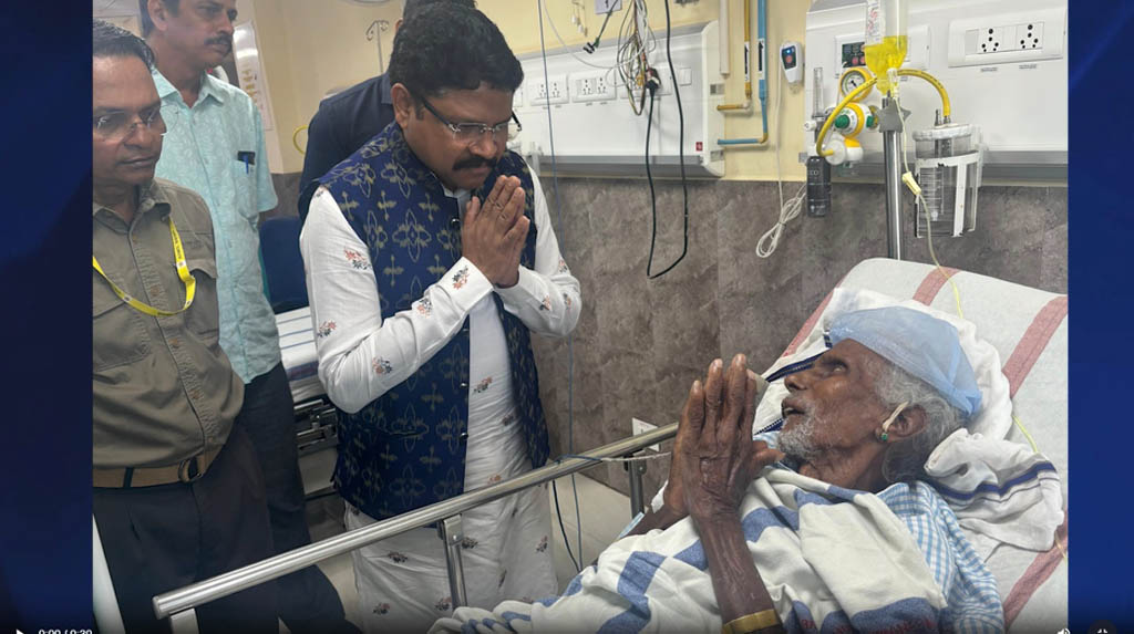 ଭୁବନେଶ୍ଵର: ଗଞ୍ଜାମ ଜିଲ୍ଲାର ବର୍ଷୀୟାନ କଳାକାର ୧୦୭ ବର୍ଷୀୟ ପଦ୍ମଶ୍ରୀ ଗୁରୁ ଗୋପୀନାଥ ସ୍ଵାଇଁ ଭୁବନେଶ୍ବର ଏମ୍ସରେ ଚିକିତ୍ସିତ ହେଉଛନ୍ତି। ସ୍ୱାସ୍ଥ୍ୟମନ୍ତ୍ରୀ ଡକ୍ଟର ମୁକେଶ ମହାଲିଙ୍ଗ ଏମ୍ସ ଗସ୍ତ କରି ତାଙ୍କ ସ୍ୱାସ୍ଥ୍ୟବସ୍ଥା ପଚାରି ବୁଝିଛନ୍ତି। ତାଙ୍କୁ ଉନ୍ନତ ଚିକିତ୍ସା ଯୋଗାଇଦେବା ପାଇଁ ଏମ୍ସ ଭୁବନେଶ୍ୱରର କାର୍ଯ୍ୟନିର୍ବାହୀ ନିର୍ଦ୍ଦେଶକ ଡାକ୍ତର ଆଶୁତୋଷ ବିଶ୍ୱାସ ଏବଂ ଏମ୍ସ ଅଧିକ୍ଷକ ଦିଲୀପ ପରିଡାଙ୍କ ସହ ଆଲୋଚନା କରିଛନ୍ତି। ସ୍ୱାସ୍ଥ୍ୟମନ୍ତ୍ରୀ ମହାପ୍ରଭୁ ଶ୍ରୀ ଜଗନ୍ନାଥଙ୍କ ନିକଟରେ ତାଙ୍କର ଆଶୁ ଆରୋଗ୍ୟ, ସୁସ୍ଥ ଜୀବନ କାମନା କରିଛନ୍ତି।