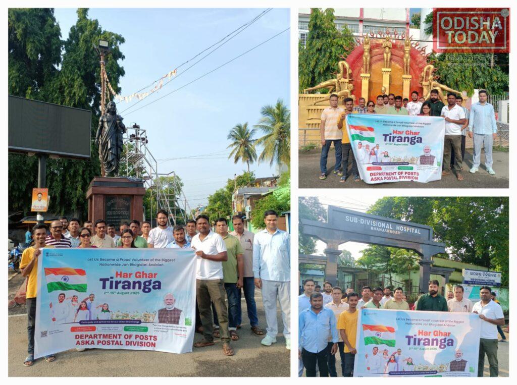 ଭଞ୍ଜନଗର, ୧୨/୦୮ (ଅମରେନ୍ଦ୍ର କୁମାର ପଟ୍ଟନାୟକ, ଗଞ୍ଜାମ ଜିଲ୍ଲା ପ୍ରତିନିଧି, ଓଡ଼ିଶା ଟୁଡେ): ଭଞ୍ଜନଗର ମୁଖ୍ୟ ଡାକଘର ତରଫରୁ ସାଧାରଣ ଜନତା ଙ୍କ ମନରେ ଦେଶପ୍ରେମର ବାର୍ତ୍ତାକୁ ଜାଗ୍ରତ କରିବା ନିମନ୍ତେ ଆଜି ସକାଳେ ପ୍ରଭାତ ଫେରି ବା ହର ଘର ତ୍ରିରଙ୍ଗା ୨୦୨୫ କାର୍ଯ୍ୟକ୍ରମ ଅନୁଷ୍ଠିତ ହୋଇଯାଇଛି। ଉକ୍ତ କାର୍ଯ୍ୟକ୍ରମ ଆସିକା ଡାକସେବା ମଣ୍ଡଳର ଅଧିକ୍ଷକଙ୍କ ନିର୍ଦ୍ଦେଶ ଅନୁସାରେ ଭଞ୍ଜନଗର ବିଭାଗରେ ଅନୁଷ୍ଠିତ ହୋଇଥିଲା। ଏହି କାର୍ଯ୍ୟକ୍ରମରେ ବହୁ ଜନସାଧାରଣ ଓ ସ୍ଥାନୀୟ ଡାକଘର କର୍ମଚାରୀ ଯୋଗଦାନ କରିଥିଲେ। ଉକ୍ତ ତ୍ରିରଙ୍ଗା ପତାକା ଶୋଭାଯାତ୍ରା ଭଞ୍ଜନଗର ମୁଖ୍ୟ ଡାକଘରୁ ବାହାରି ଷ୍ଟେଟ ବ୍ୟାଙ୍କ ଛକ, ଉପେନ୍ଦ୍ର ଉଚ୍ଚ ବିଦ୍ୟାଳୟ, ଉପଜିଲ୍ଲାପାଳ କାର୍ଯ୍ୟାଳୟ ଦେଇ ଭଞ୍ଜନଗର ବସଷ୍ଟାଣ୍ଡ୍ ଅତିକ୍ରମ କରି ମୁଖ୍ୟ ଚିକିତ୍ସାଳୟ ହୋଇ ପୁଣି ଡାକଘର ଠାରେ ପହଞ୍ଚିଥିଲା।ଏହି କାର୍ଯ୍ୟକ୍ରମ ମୁଖ୍ୟ ଡାକପାଳ ଜିତେନ୍ଦ୍ର କୁମାର ସ୍ବାଇଁଙ୍କ ଅଧ୍ଯକ୍ଷତାରେ ସମ୍ପର୍ଣ୍ଣ ହୋଇଥିଲା। ଏଥିସହ ବରିଷ୍ଠ ଡାକ କର୍ମଚାରି ଶମ୍ଭୁ ପ୍ରସାଦ ତ୍ରିପାଠୀ, ମିହିର ପ୍ରସାଦ ପଟ୍ଟନାୟକ, ସୁମନ ସଙ୍ଗୀତ ପଟ୍ଟନାୟକ, ଗାୟତ୍ରୀ ପ୍ରିୟଦର୍ଶିନୀ ତ୍ରିପାଠୀ, ରୋଜାଲିନ୍ ଆଚାର୍ଯ୍ୟ, ମକରଧ୍ବଜ ସୋରେନ୍, ଗେରିସିଂ ମିନା, ରାଜେଶ କୁମାର ଦେଚୱାଲ୍, ମହେଶ୍ବର ବିଷୋୟୀ,ସୁନାରାମ୍ ମାରାଣ୍ଡି, ଶଙ୍କର କୁମାର ସାହୁ,ମିଟୁ ମହାରଣା, ସମିର୍ ଶବର, ରବିନ୍ଦ୍ର ରଥ ସମେତ ଅନ୍ୟ ସମସ୍ତ ଡାକ କର୍ମଚାରୀ ଉପସ୍ଥିତ ଥୂଲେ I
