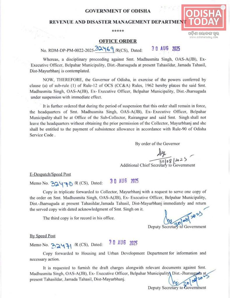 ଝାରସୁଗୁଡ଼ା : ମୟୁରଭଞ୍ଜ ଜାମଦା ତହସିଲଦାର ଗିରଫ । ଜାମଦା ତହସିଲଦାର ମଧୁସ୍ମିତା ସିଂଙ୍କୁ ଗିରଫ କଲା କ୍ରାଇମବ୍ରାଞ୍ଚ ଇଓଡବ୍ଲୁ । ଝାରସୁଗୁଡା ବେଲପାହାଡ ମ୍ୟୁନିସିପାଲିଟିରେ ନିର୍ବାହୀ ଅଧିକାରୀ ଥିବା ବେଳେ ୪ କୋଟି ଟଙ୍କାର ସରକାରୀ ଅର୍ଥକୁ ହେରଫେର କରିଥିଲେ । ଏହି ଘଟଣାରେ ପୂର୍ବରୁ ରାଜ୍ୟ ସରକାର ମଧୁସ୍ମିତା ସିଂଙ୍କୁ ନିଲମ୍ବିତ କରିଛନ୍ତି ।ସୂଚନାଯୋଗ୍ୟ, ମଧୁସ୍ମିତା ସିଂ ବେଲପାହାଡ଼ରେ କାର୍ଯ୍ୟରତ ଥିବା ବେଳେ ୪ କୋଟିରୁ ଊର୍ଦ୍ଧ୍ଵ ଟଙ୍କା ହେରଫେର ନେଇ ସଙ୍ଗୀନ ଅଭିଯୋଗ ହୋଇଥିଲା । ପ୍ରଥମେ ବେଲପାହାଡ଼ ପୋଲିସ ଏକ ମାମଲା ରୁଜୁ କରି ତତ୍କାଳୀନ ଆକାଉଣ୍ଟାଣ୍ଟ ବିଭୁତି ସାହୁକୁ ଗିରଫ କରିଥିଲେ । ଏହାପରେ ପୌରପରିଷଦର କାର୍ଯ୍ୟନିର୍ବାହୀ ଅଧିକାରୀ ଥିବା ବେଳେ ଆର୍ଥିକ ଅନିୟମିତତା ଯୋଗୁଁ ଭିଜିଲାନ୍ସ କୋର୍ଟରେ ମଧୁମିତା ସିଂ ଦଣ୍ଡିତ ହେବା ପରେ ୩୦ ତାରିଖରେ ରାଜ୍ୟ ସରକାରଙ୍କ ରାଜସ୍ବ ବିଭାଗ ପକ୍ଷରୁ ନିଲମ୍ବନ କରାଯାଇଥିଲା । ଏହାପରେ ଆଜି ତାଙ୍କୁ ଗିରଫ କରାଯାଇଛି ।