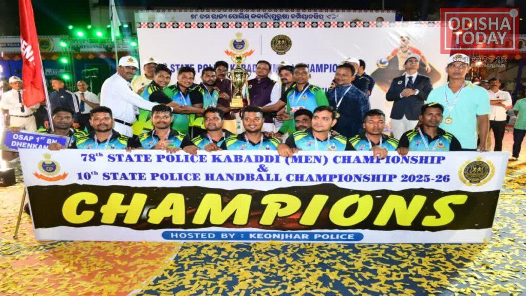 କେନ୍ଦୁଝର: କେନ୍ଦୁଝର ଜିଲ୍ଲା ରେ ଆୟୋଜିତ ୭୮ତମ ରାଜ୍ୟ ପୋଲିସ ପୁରୁଷ କବାଡି ଚାମ୍ପିୟନସିପ୍ ଓ ଦଶମ ପୋଲିସ ହ୍ୟାଣ୍ଡବଲ ଚାମ୍ପିୟନସିପର ଉଦ୍‌ଯାପନ ସମାରୋହରେ ମୁଖ୍ୟମନ୍ତ୍ରୀ ମୋହନ ଚରଣ ମାଝୀ ସାମିଲ ହୋଇଥିଲେ । “ଓଡ଼ିଶା ପୋଲିସର ଖେଳାଳିମାନେ ବିଭିନ୍ନ ଆଥଲେଟିକ୍ସ ଗେମରେ ସେମାନଙ୍କର ଉତ୍କୃଷ୍ଟ ପ୍ରଦର୍ଶନ କରି କେବଳ ଓଡ଼ିଶା ପାଇଁ ଗୌରବ ନୁହେଁ ବରଂ ଭାରତର ପଦକ ତାଲିକାରେ ମଧ୍ୟ ଗୁରୁତ୍ୱପୂର୍ଣ୍ଣ ଅବଦାନ ରଖିଛନ୍ତି” ବୋଲି କହିଛନ୍ତି ମୁଖ୍ୟମନ୍ତ୍ରୀ ।କବାଡି ଚାମ୍ପିୟନସିପରେ ରାଉରକେଲାର ପୋଲିସ ଚତୁର୍ଥ ବାଟାଲିୟନକୁ ହରାଇ କଟକ ପୋଲିସ ଷଷ୍ଠ ବାଟାଲିୟନ ବିଜୟୀ ହୋଇଥବା ବେଳେ ଓ ହ୍ୟାଣ୍ଡବଲ ଚାମ୍ପିୟନସିପରେ ଢେଙ୍କାନାଳ ଜିଲ୍ଲା କେନ୍ଦୁଝର ଜିଲ୍ଲାକୁ ହରାଇ ବିଜୟୀ ହୋଇଥିଲା। ବିଜୟୀ ଓ ରନର୍ସ ଅପ ଦଳକୁ ମୁଖ୍ୟମନ୍ତ୍ରୀ ପୁରସ୍କୃତ କରିଥିଲେ।