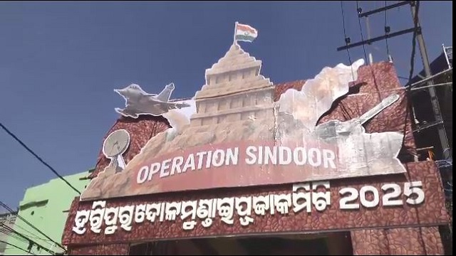 କଟକ: ପୂଜା ମଣ୍ଡପରେ ଅପରେସନ ସିନ୍ଦୂର ବାର୍ତ୍ତା । ଯୁଦ୍ଧ କ୍ଷେତ୍ର ସାଜିଛି ମା‘ଙ୍କ ମଣ୍ଡପ। ଅପରେସନ ସିନ୍ଦୂର ଥିମରେ ସଜ୍ଜିତ କଟକ ହରିପୁର ଦୋଳମୁଣ୍ଡାଇ ଦୁର୍ଗା ପୂଜା ମଣ୍ଡପ । ମଣ୍ଡପରେ ମହାଷ୍ଟମୀ ପୂଜା ପାଇଁ ମହିଳା ମାନେ ଶଙ୍ଖା, ଶାଢି, ସିନ୍ଦୁର ଓ ବ୍ରତ ନେଇ ମାଆଙ୍କ ପାଖରେ ପୂଜାର୍ଚ୍ଚନା କରି ଆଶିଷ ଲାଭ କରୁଛନ୍ତି ।