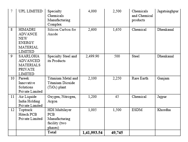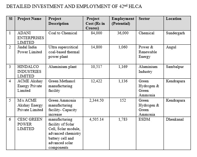 ଉଚ୍ଚ କ୍ଷମତା ସଂପର୍ଣ୍ଣ ବୈଠକରେ ୧୨ଟି ନିବେଶ ପ୍ରସ୍ତାବକୁ ଅନୁମୋଦନମୁଖ୍ୟମନ୍ତ୍ରୀ ଶ୍ରୀ ମୋହନ ଚରଣ ମାଝୀଙ୍କ ଅଧ୍ୟକ୍ଷତାରେ ଅନୁଷ୍ଠିତ ୪୨ତମ HLCA ବୈଠକରେ ₹୧,୪୧,୯୯୩.୫୪ କୋଟି ଟଙ୍କାର ୧୨ଟି ନିବେଶ ପ୍ରସ୍ତାବକୁ ଅନୁମୋଦନ କରାଯାଇଛି, ଯାହା ଦ୍ୱାରା ୪୯,୭୪୫ ନିଯୁକ୍ତି ସୁଯୋଗ ସୃଷ୍ଟି ହୋଇଛି। ଏହି ମଞ୍ଜୁରୀରେ ନୂତନ ଯୁଗର କ୍ଷେତ୍ରଗତ ନିବେଶକୁ ପ୍ରାଥମିକତା ଦିଆଯାଇଛି। CESC ଗ୍ରୀନ୍ ପାୱାର ଲିମିଟେଡ୍ ESDM (ଇଲେକ୍ଟ୍ରୋନିକ୍ସ ସିଷ୍ଟମ୍ ଡିଜାଇନ୍ ଏବଂ ମାନୁଫାକ୍ଚରିଂ) କ୍ଷେତ୍ରରେ ନିବେଶ କରିଛି, ଯେତେବେଳେ ACME ଅକ୍ଷୟ ଏନର୍ଜି ପ୍ରାଇଭେଟ୍ ଲିମିଟେଡ୍ ସବୁଜ ହାଇଡ୍ରୋଜେନ୍ ଏବଂ ସବୁଜ ଆମୋନିଆ ଉତ୍ପାଦନରେ ନିବେଶ କରିଛି। ଜିନ୍ଦଲ ଇଣ୍ଡିଆ ପାୱାର ଲିମିଟେଡ୍ ଶକ୍ତି ଏବଂ ନବୀକରଣୀୟ ଶକ୍ତି କ୍ଷେତ୍ରରେ ମଧ୍ୟ ନିବେଶ କରିଛି।ସିଙ୍ଗଲ୍ ୱିଣ୍ଡୋ କମିଟି ବୈଠକରେ ୨୧ଟି ନିବେଶ ପ୍ରସ୍ତାବକୁ ଅନୁମୋଦନମୁଖ୍ୟ ସଚିବ ଶ୍ରୀ ମନୋଜ ଆହୁଜାଙ୍କ ଅଧ୍ୟକ୍ଷତାରେ ୧୪୧ତମ ସିଙ୍ଗଲ୍ ୱିଣ୍ଡୋ କମିଟି ୪୦୧୯.୫୩ କୋଟି ଟଙ୍କାର ନିବେଶକୁ ଅନୁମୋଦନ କରିଛି, ଯାହା ୧୬,୫୯୦ ନିଯୁକ୍ତି ସୁଯୋଗ ସୃଷ୍ଟି କରିଛି। ଏହି ମଞ୍ଜୁରୀ ବୈଠକରେ ମୋଟ ୨୧ଟି ନିବେଶ ପ୍ରସ୍ତାବକୁ ଅନୁମୋଦନ କରାଯାଇଛି।ଏହି ପଦକ୍ଷେପଗୁଡ଼ିକ ସମଗ୍ର ଓଡ଼ିଶାରେ ଶିଳ୍ପ ଅଭିବୃଦ୍ଧିକୁ ବୃଦ୍ଧି କରିବ, ଅଧିକ କୁଶଳୀ ନିଯୁକ୍ତି ସୃଷ୍ଟି କରିବ ଏବଂ ସ୍ଥାୟୀ ବିକାଶକୁ ଗତିଶିଳ କରିବ। ଏହା ଭାରତୀୟ ଏବଂ ବିଶ୍ୱସ୍ତରୀୟ ନିବେଶକଙ୍କ ପାଇଁ ଏକ ଅଗ୍ରଣୀ ଗନ୍ତବ୍ୟସ୍ଥଳ ଭାବରେ ରାଜ୍ୟର ସ୍ଥିତିକୁ ସୁଦୃଢ଼ କରିବାରେ ମଧ୍ୟ ସାହାଯ୍ୟ କରିବ। ଏକ ସକ୍ରିୟ ଆଭିମୁଖ୍ୟ ସହିତ, ଓଡ଼ିଶା ସରକାର ଶିଳ୍ପକୁ ପ୍ରୋତ୍ସାହିତ କରୁଛି, ଭିତ୍ତିଭୂମିର ଉନ୍ନତି କରୁଛି ଏବଂ ନିଯୁକ୍ତି ଏବଂ ସ୍ଥାୟୀତ୍ୱ ଉପରେ ଧ୍ୟାନ ଦେଉଛି। ଏହି ପ୍ରୟାସଗୁଡ଼ିକ ଓଡ଼ିଶାର ଦ୍ରୁତ ପ୍ରଗତିକୁ ଆଗେଇ ନେଉଛି ଏବଂ ଏହାକୁ ଭାରତର ସାମଗ୍ରିକ ଅଭିବୃଦ୍ଧି ଏବଂ ବିକାଶରେ ଏକ ଗୁରୁତ୍ୱପୂର୍ଣ୍ଣ ଯୋଗଦାନକାରୀ କରୁଛି।