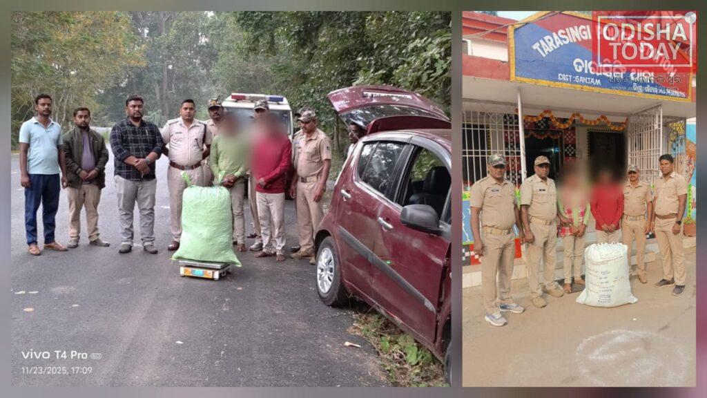 ଭଂଜନଗର –  ୨୪/୧୧ (ଅମରେନ୍ଦ୍ର କୁମାର ପଟ୍ଟନାୟକ, ଗଞ୍ଜାମ ଜିଲ୍ଲା ପ୍ରତିନିଧି, ଓଡ଼ିଶା ଟୁଡେ): କନ୍ଧମାଳ ରୁ ଦଶପଲ୍ଲା ଦେଇ ଭଂଜନଗର ଅଭିମୁଖେ କାର୍ ରେ ଗଞ୍ଜେଇ ଧରି ଆସୁଥିବା ବେଳେ, ବ୍ରାହ୍ମଣପଦର ନିକଟରେ ଚଢ଼ାଉ କଲା ତାରାସିଙ୍ଗି ଥାନା ପୋଲିସ । ସେମାନଙ୍କ ଠାରୁ ୨୮ କିଲୋ ଗଞ୍ଜେଇ ସହ, ୨ ଅଭିଯୁକ୍ତଙ୍କୁ ଗିରଫ କରିଛି ପୋଲିସ । ଥାନା ସୂତ୍ରରୁ ମିଳିଥିବା ସୂଚନା ପ୍ରକାରେ ଇନିସପେକ୍ଟର ସମୀର କୁମାର ବେହେରା ଟିମ୍ ସହ ଲେମ୍ଭେଇ, ତିଳିସିଙ୍ଗି, ତିନିଛକିଆ ପ୍ରଭୃତି ଅଞ୍ଚଳ ପେଟ୍ରୋଲିଂ ସାରି ଫେରୁଥିବା ବେଳେ, ବ୍ରାହ୍ମଣପଦର ନିକଟରେ ଏକ କାର୍ କୁ ସନ୍ଦେହରେ ସେଥିରେ ଗଞ୍ଜେଇ ଥିବା ଜାଣିବାକୁ ପାଇଥିଲେ । ଘଟଣା ସ୍ଥଳରୁ କାର୍ ସହ ୨୮ କିଲୋ ଗଞ୍ଜେଇ ଜବତ କରିବା ସହ, ଦୁଇ ଅଭିଯୁକ୍ତଙ୍କୁ ଗିରଫ କରିଥିଲେ । ଗିରଫ ଅଭିଯୁକ୍ତ ମାନେ କନ୍ଧମାଳ ଜିଲ୍ଲା ଫିରିଙ୍ଗିଆ ଥାନା ଅଞ୍ଚଳର ସୁଜିତ୍ କହଁର ଏବଂ ଚକ୍ରପତି କହଁର । ଏନେଇ ତାରାସିଙ୍ଗି ଥାନା କେଶ୍ ନମ୍ବର ୪୪୦/୨୫ ରେ ଏକ ମାମଲା ରୁଜୁ କରି ତଦନ୍ତ ଚାଲିଥିବା ନେଇ, ଥାନାଧିକାରୀଣୀ ଶୁଭଲକ୍ଷ୍ମୀ ପୂଜାରୀ ସୂଚନା ଦେଇଛନ୍ତି ।