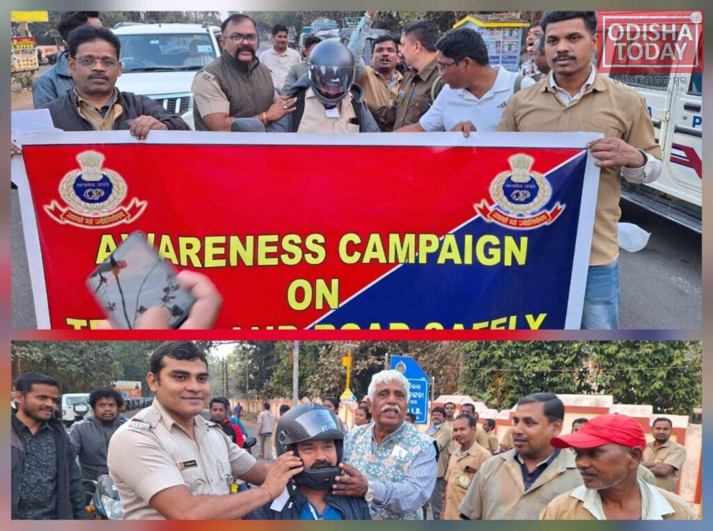 ଭଞ୍ଜନଗର ପୁଲିସ୍‌ ପକ୍ଷରୁ ହେଲମେଟ ଓ ଫୁଲଦେଇ ଟ୍ରାଫିକ ସଚେତନତା