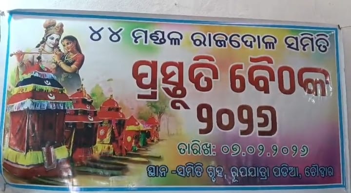 ଚୌଦ୍ୱାର (ଶିବବ୍ରତ ଦାସ) କଟକ ଜିଲ୍ଲା ଚୌଦ୍ୱାର ଠାରେ ଆଜି ୪୪ ମଣ୍ଡଳ ରାଜଦୋଳ ସମିତିର ପ୍ରସ୍ତୁତି ବୈଠକ ଅନୁଷ୍ଠିତ ହୋଇଯାଇଛି l ଉକ୍ତ ବୈଠକରେ ଠାକୁର ମାନଙ୍କ ର ମାର୍ଫଦାର ଭାଇମାନେ ଓ କର୍ମକର୍ତା ମାନେ ଉପସ୍ଥିତ ଥିଲେ l ସମିତିର ସଭାପତି ଶ୍ରୀ ଦୀପକ ମଙ୍ଗରାଜ ଅଧକ୍ଷତା ରେ ଆୟୋଜିତ ଏହି ବୈଠକରେ ଚଳିତ ବର୍ଷ ୫ ଗୋଟି ଯାତ୍ରାର ଦିନ ନିର୍ଘଣ୍ଟ କରାଯାଇଥିଲା l ଚଳିତ ବର୍ଷ ଫାଲ୍ଗୁନ ଏକାଦଶୀ ଫେବୃଆରୀ ୨୭ ତାରିଖ ଦିନ ଆଗ୍ରାହାଟ, ୨୮ ତାରିଖ ଦ୍ୱାଦଶୀ ଦିନ ଜଗତପୁର,ମାର୍ଚ୍ଚ ୧ ତାରିଖ ତ୍ରୟୋଦଶୀ ଦିନ ଗୋଡିପାଟଣା,୨ ତାରିଖ ଦିନ ବିଶ୍ରାମ ଦିବସ,୩ ତାରିଖ ମଙ୍ଗଳବାର ଦୋଳ ପୂର୍ଣ୍ଣିମା ଦିନ ଚୌଦ୍ୱାର ମେଳଣ ଓ ଶେଷରେ ୪ ତାରିଖ ଦିନ ଫକୀରପୁର ମେଳଣ ଅନୁଷ୍ଠିତ ହେବ ବୋଲି ସ୍ଥିର ହୋଇଥିଲା l ଆଜିର ଏହି କାର୍ଯ୍ୟକ୍ରମ ରେ ୪୪ ମଣ୍ଡଳ ର ଉପସଭାପତି ଶ୍ରୀ ହରିହର ପଣ୍ଡା,ସମ୍ପାଦକ ନବ ସାହୁ,ଶିବ ଶଙ୍କର ସାହୁ,ଭାବଗ୍ରାହୀ ପଣ୍ଡା,ପ୍ରକାଶ ପଣ୍ଡା,ଚନ୍ଦ୍ର ମୋହନ ଚୌଧୁରୀ,ରବୀନ ଚନ୍ଦ୍ର ସୁବୁଦ୍ଧିରାୟ,ଭାଗିରଥି ବେଉରା,ହେମନ୍ତ ବିଶ୍ୱାଳ ଙ୍କ ସମେତ ସମସ୍ତ ମାର୍ଫଦାର ଭାଇ ମାନେ ଉପସ୍ଥିତ ଥିଲେ l