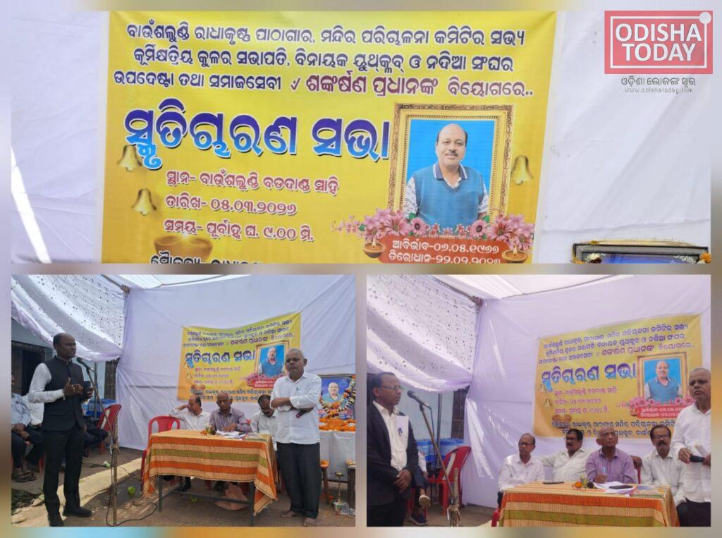 ଶିକ୍ଷୟିତ୍ରୀ ସଂଗୀତା ପଣ୍ଡା ଓ ସଂଗୀତ ଗୁରୁ ଅଶୋକ କୁମାର ମହାପାତ୍ରଙ୍କ ଦ୍ୱାରା ସ୍ମୃତି ସଂଗୀତ ପରିବେଷଣ କରାଯାଇଥିଲା ।କବି ପ୍ରଶାନ୍ତ ମହାନ୍ତି, ଆନନ୍ଦ ସଂଗୀତାନୁଷ୍ଠାନର ଗୁରୁ ଅଶୋକ କୁମାର ମହାପାତ୍ର, କୂର୍ମିକୁଳ ପ୍ରଦେଶ କମିଟି ସମ୍ପାଦକ ବିଶ୍ୱନାଥ ରାଉତ, ପ୍ରାକ୍ତନ ଅଧ୍ୟକ୍ଷ ଡଃ. ପୂର୍ଣ୍ଣଚନ୍ଦ୍ର ତ୍ରିପାଠୀ, ଭଞ୍ଜନଗର ବାର ଆସୋସିଏସନ ସଭାପତି ଲକ୍ଷ୍ମୀକାନ୍ତ ମହାପାତ୍ର,ଭଞ୍ଜନଗର ପଞ୍ଚାୟତ ସମିତି ପୂର୍ବତନ ଚେୟାରମ୍ୟାନ୍ ଭବାନୀ ଶଙ୍କର ପ୍ରଧାନ, ବାଉଁଶଲୁଣ୍ଡି ଗ୍ରାମ ପଞ୍ଚାୟତ ସରପଞ୍ଚ ଉଦ୍ଧବ ଚରଣ ମିଶ୍ର, କୂର୍ମିକ୍ଷତ୍ରିୟ ସମ୍ପାଦକ ବୈଦ୍ୟନାଥ ପ୍ରଧାନ, ବରିଷ୍ଠ ଆଇନଜୀବୀ ବୈଦ୍ୟନାଥ ସାହୁ ମଞ୍ଚାସୀନ ହୋଇ ସ୍ଵର୍ଗତ ବ୍ୟକ୍ତିତ୍ୱ ଶଙ୍କର୍ଷଣ ପ୍ରଧାନଙ୍କ ସ୍ମୃତି ଚାରଣ କରି କହିଥିଲେ ଯେ, ସେ ବାଲ୍ୟାବସ୍ଥାରୁ ମାତା ଓ ପିତାଙ୍କୁ ହରାଇ ବଡ଼ଭାଇ ଓ ଭାଉଜଙ୍କ ତତ୍ତ୍ଵାବଧାନରେ ରହିଥିଲେ । ଖଣ୍ଡଦେଉଳି(ଗଞ୍ଜାମ) ଉଚ୍ଚ ବିଦ୍ୟାଳୟରୁ ହାଇସ୍କୁଲ ଶିକ୍ଷା ସମାପ୍ତ ପରେ ଭଞ୍ଜନଗର କବି ସମ୍ରାଟ ମହାବିଦ୍ୟାଳୟରେ ଆଇ.ଏସସି ଶିକ୍ଷା ଲାଭ କରି ଇଲେକ୍ଟ୍ରିକାଲ ଆଇ.ଟି.ଆଇ ତାଲିମ ପ୍ରାପ୍ତ ହୋଇ ଜଳସେଚନ ବିଭାଗ, ଭଞ୍ଜନଗରରେ ଯୋଗ ଦିଅନ୍ତି । ଏହାପରେ ସ୍ୱେଚ୍ଛାକୃତ ଅବସର ଗ୍ରହଣ କରି ସମାଜର ମୁଖ୍ୟ ସ୍ରୋତରେ ଜଡ଼ିତ ହୋଇ ସମାଜର ବିଭିନ୍ନ ପ୍ରଗତି ମୂଳକ କାର୍ଯ୍ୟ ସମ୍ପାଦନ କରିଛନ୍ତି ।ବାମପନ୍ଥୀ ଚିନ୍ତାଧାରାରେ ଉଦ୍ବୁଦ୍ଧ ହୋଇ ଲୋକଙ୍କର ନ୍ୟାର୍ଯ୍ୟ ଦାବି ହାସଲ ପାଇଁ ବିଭିନ୍ନ ଆନ୍ଦୋଳନରେ ସେ ନିଜକୁ ସାମିଲ କରିଥିଲେ ।