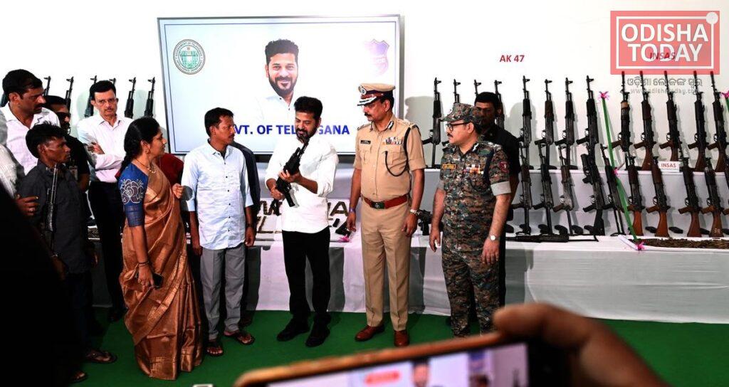 ମାଓବାଦୀମାନେ ମୁଖ୍ୟମନ୍ତ୍ରୀ ନିକଟରେ ୧୨୪ଟି ଅତ୍ୟାଧୁନିକ ବନ୍ଧୁକ ହସ୍ତାନ୍ତର କରିଛନ୍ତି। ସେଥିମଧ୍ୟରୁ ଇନସାସ ଏଲଏମଜି ରାଇଫଲ ଗୋଟିଏ, ୩୧ଟି ଏକେ-୪୭, ୨୧ଟି ଇନସାସ, ୨୦ଟି ଏସଏଲଆର, ୧୮ଟି ୩୦୩, ୯ ଏମଏମ ପିସ୍ତଲ ଗୋଟିଏ, ୮ ଏମଏମ ଦୁଇଟି, ୧୮ଟି ସିଙ୍ଗଲ ସଟ୍ ବନ୍ଧୁକ, ୨ଟି ବିଜିଏଲ ସମେତ ଅନ୍ୟ ହତିଆର ମଧ୍ୟ ହସ୍ତାନ୍ତର କରାଯାଇଛି। ଏମାନଙ୍କ ମଧ୍ୟରେ ପିଏଲଜିଏ ବାଟାଲିୟନ-୧ର ଆତ୍ମସମରମ୍ପଣ କରିଥିବା ୪୨ ଜଣଙ୍କ ମଧ୍ୟରୁ କେନ୍ଦ୍ରୀୟ କମିଟି ସଦସ୍ୟ ୨ ଜଣ, ଡିଭିଜନାଲ କମିଟି ମେମ୍ବର ୩ ଜଣ, ଏସିଏମ ୧୮ ଜଣ, ପାର୍ଟି ମେମ୍ବର ୧୯ ଜଣ। ତେଲେଙ୍ଗାନା ରାଜ୍ୟ କମିଟିର ୩୦ ଜଣ ସଦସ୍ୟ ମଧ୍ୟରୁ ଡିଭିସିଏମ ୨ ଜଣ, ଏସିଏମ ୧୨ ଜଣ, ପାର୍ଟି ମେମ୍ବର ୧୬ ଜଣ। ଦଣ୍ଡକାରଣ୍ୟ ସ୍ବତନ୍ତ୍ର ଜୋନାଲ କମିଟିର ୩୨ ଜଣଙ୍କ ମଧ୍ୟରୁ କେନ୍ଦ୍ରୀୟ କମିଟି ମେମ୍ବର ଜଣେ, ଡିଭିସିଏମ ୩ ଜଣ,ଏସିଏମ ୭ ଜଣ, ୨୧ ଜଣ ପାର୍ଟି ମେମ୍ବର।
