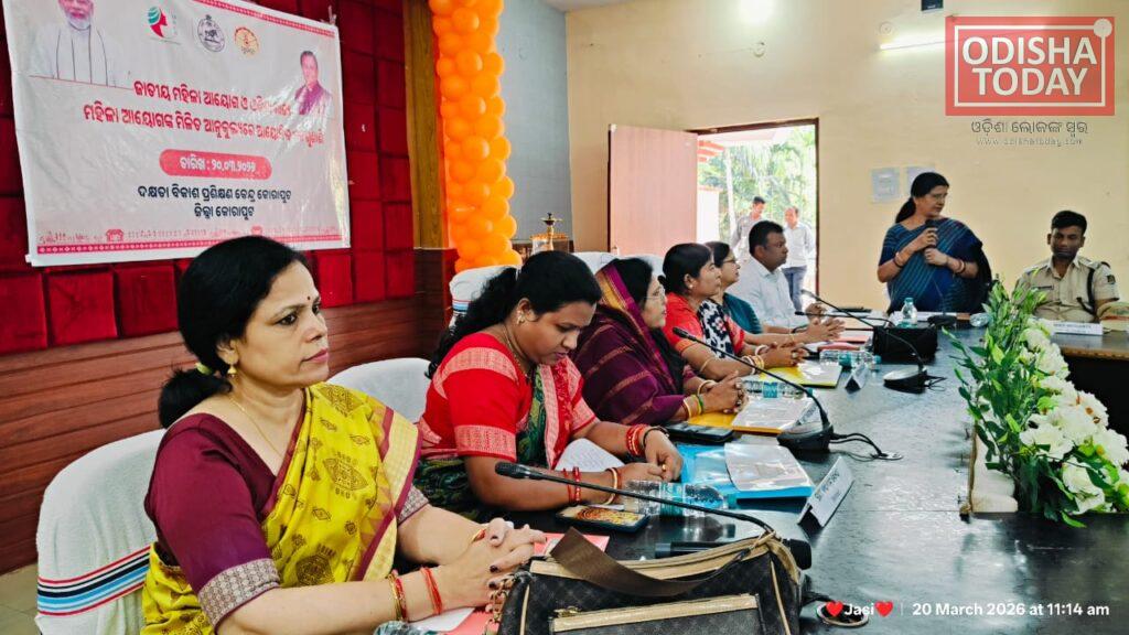 ଶ୍ରୀମତୀ ଶୋଭନା ମହାନ୍ତିଙ୍କ ଅଧ୍ୟକ୍ଷତାରେ ଏବଂ ଆୟୋଗର ସଦସ୍ୟା ଶ୍ରୀମତୀ ପ୍ରତିଭା ଶତପଥ୍ ଓ ଶ୍ରୀମତୀ ମୁକ୍ତା ସାହୁଙ୍କ ଉପସ୍ଥିତରେ ଅନୁଷ୍ଠିତ ଉକ୍ତ କାର୍ଯ୍ୟକ୍ରମରେ, କୋରାପୁଟ ଅତିରିକ୍ତ -ଜିଲ୍ଲାପାଳ ଶ୍ରୀ ତପନ କୁମାର ନାୟକ, କୋରାପୁଟ ଅତିରିକ୍ତ ଆରକ୍ଷୀ ଅଧୀକ୍ଷକ ଶ୍ରୀ ଅମ୍ବିତ ମହାନ୍ତି, ଡେପୁଟି କଲେକ୍ଟର ସୁଶ୍ରୀ ଆକାଂକ୍ଷା ବିଶ୍ଵାଳ, କୋରାପୁଟ ଉପ-ଆରକ୍ଷୀ ଅଧୀକ୍ଷିକା ସୁଶ୍ରୀ ପୁଷ୍ପାଞ୍ଜଳି ନିଙ୍ଗ, କୋରାପୁଟ ଜିଲ୍ଲା ସମାଜ କଲ୍ୟାଣ ଅଧିକାରୀ ଜୋତ୍ସା ପାଢି, କୋରାପୁଟ ଜିଲ୍ଲା ସୁରକ୍ଷା ଅଧିକାରୀ ସୁଶ୍ରୀ ସବିତା ସମାଦର ଏବଂ ନବରଙ୍ଗପୁର ଜିଲ୍ଲା ସୁରକ୍ଷା ଅଧିକାରୀ ସୁଶ୍ରୀ ରମା ପଟ୍ଟନାୟକ, ଇତ୍ୟାଦି ଜିଲ୍ଲା ସ୍ତରୀୟ ଅଧିକାରୀମାନେ ଉପସ୍ଥିତ ରହି ଜନଶୁଣାଣି କାର୍ଯ୍ୟକ୍ରମରେ କରିଥିଲେ ।
