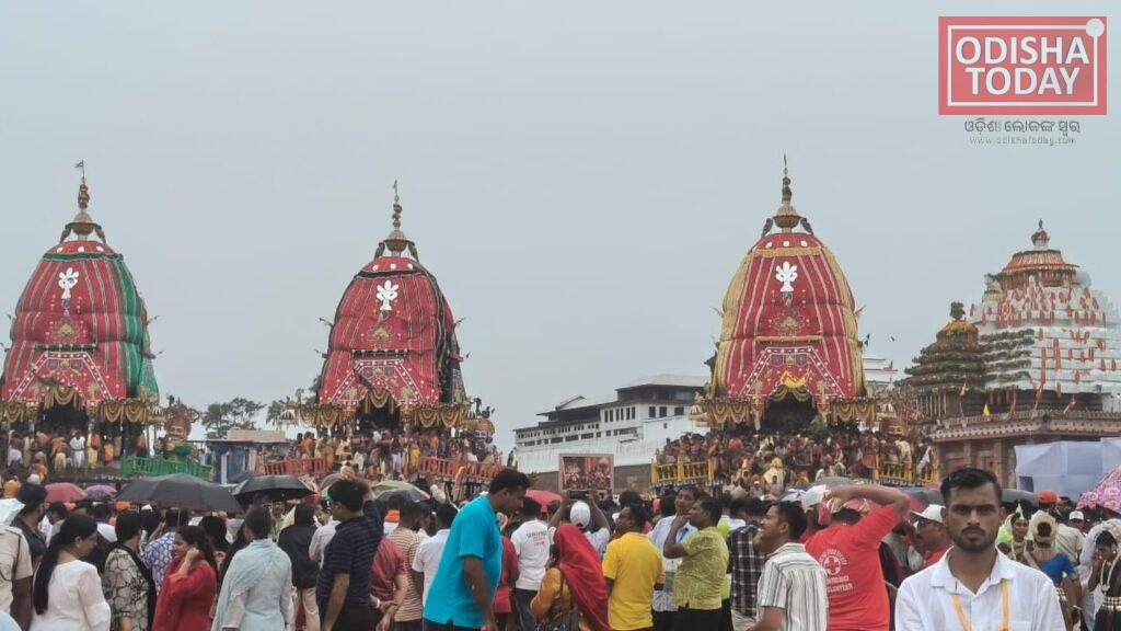 ରଥଯାତ୍ରା ଅବସରରେ ଆଜି ନିର୍ଦ୍ଧାରିତ କାର୍ଯ୍ୟସୂଚୀ ଅନୁଯାୟୀ ନୀତିକାନ୍ତି ଆରମ୍ଭ ହୋଇଥିଲା। ଅପରାହ୍ଣ ୪ଟା ସୁଦ୍ଧା ତିନି ରଥରୁ ଚାରମାଳ ଫିଟା ଯାଇଥିଲା। ଅପରାହ୍ଣ ପ୍ରାୟ ୪ଟା ୧୦ରେ ତାଳଧ୍ବଜ ରଥ ଶରଧାବାଲି ଅଭିମୁଖେ ବାହାରିଥିଲେ। ପ୍ରାୟ ୬ଟାରେ ସଭଦ୍ରାଙ୍କ ଦର୍ପଦଳନ ବାହାରିଥିବା ବେଳେ ୭ଟା ୪୫ରେ ନନ୍ଦିଘୋଷରେ ମହାପ୍ରଭୁ ଜଗନ୍ନାଥ ଆଗକୁ ବଢ଼ିଥିଲେ। ଆସନ୍ତାକାଲି ପୂର୍ବାହ୍ଣ ସାଢ଼େ ୯ଟାରେ ପୁଣି ଥରେ ରଥ ଟଣାଯିବ।ବଡ଼ଭାଇ ପ୍ରଭୁ ବଳଭଦ୍ର ଓ ଦେବୀ ସୁଭଦ୍ରାଙ୍କ ପରେ ମହାପ୍ରଭୁ ଶ୍ରୀଜଗନ୍ନାଥ ଶେଷରେ ଶରଧାବାଲି ଅଭିମୁଖେ ବାହାରିଥିଲା। କାଳିଆ ଠାକୁରଙ୍କ ନନ୍ଦିଘୋଷଙ୍କୁ ଭକ୍ତମାନେ ଶ୍ରଦ୍ଧାର ସହିତ ଟାଣିଟାଣି ନେଇଥିଲେ। ବଡ଼ଦାଣ୍ଡରେ ଲକ୍ଷାଧିକ ଭକ୍ତଙ୍କ ଗହଳି ଭିତରେ ହରିବୋଲ ଓ ହୁଳିହୁଳି ସହିତ ଘଣ୍ଟ, ଶଙ୍ଖରେ ଏକ ଭବ୍ୟ ଆଧ୍ୟାତ୍ମିକ ପରିବେଶ ସୃଷ୍ଟି ହୋଇଥିଲା। ନନ୍ଦିଘୋଷ ପୂର୍ବରୁ ଦେବୀ ସୁଭଦ୍ରା ନିଜର ଦର୍ପଦଳନରେ ଆଗକୁ ବଢ଼ିଥିଲା। ପ୍ରଥମେ ପ୍ରଭୁ ବଳଭଦ୍ରଙ୍କର ତାଳଧ୍ବଜ ସିଂହଦ୍ବାର ସାମ୍ନାରୁ ବାହାରି ଥିଲା ।